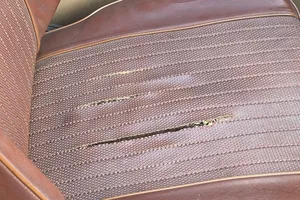 The original interior is all there. Nice dashboard. Headliner needs to be replaced. Windshield gaskets are dry rotted, some exterior trim needs replacing.